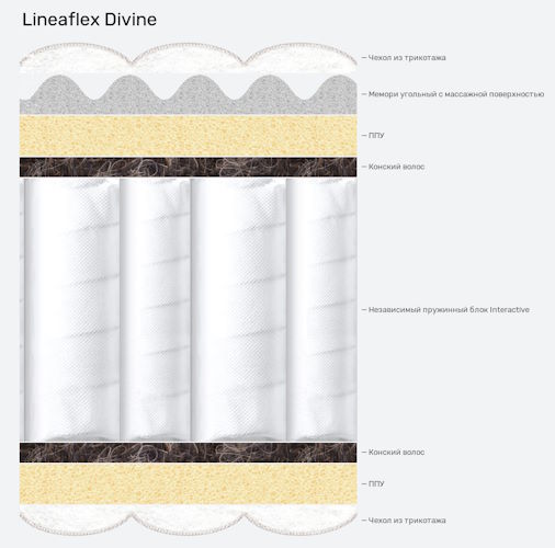Конский волос – тонкая прослойка среди основных компонентов. Защищает матрас от быстрого износа.