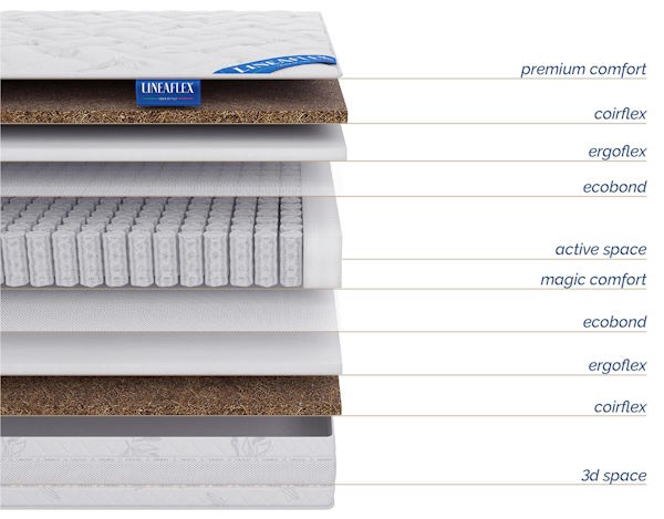 Матрас Энергия спокойно принимает большой вес (до 140 кг), не теряя при этом формы. Быстро восстанавливает поверхность после нагрузки. Основой служит беспружинный блок, помещенный в равномерные слои кокосовой койры и пены ERGOFLEX. Чехол выполнен из хлопкового трикотажа, отлично регулирующего температуру.