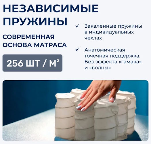 Подпись к товару Max. вес на спальное место - 120 кг, С независимыми пружинами, любой размер матраса