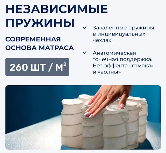 Karla – ортопедический матрас с независимым пружинным блоком (высота 20 см). Каждая пружина заключена в отдельный чехольчик из нетканного материала, благодаря чему при нагрузке сжимаются только те места, к которым приложено усилие. Плотность изделия относится к классу «жесткий». Отлично влияет на здоровый сон и гарантирует правильную анатомическую поддержку всего тела. Прекрасно подходит как для одного человека, так и для семейной пары.