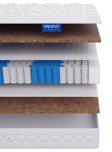 Наполнитель матраса – кокосовая койра (50% латекса). Чехол выполнен из мягкого и приятного на ощупь высококачественного жаккарда (в составе 40% хлопка). Имеет белый цвет с перламутровым отливом. Стежка – гипоаллергенный и экологически чистый файбер. Рекомендуемая нагрузка до 120 кг.