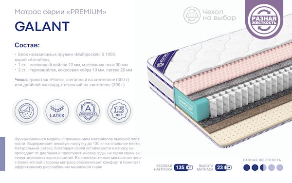 | Тип матраса | Пружинный - Multi Pocket S1000 |