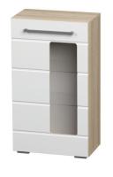изделие имеет корпус с ЛДСП и дверцу со стеклянной вставкой и две полочки внутри.