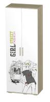 Данная модель оснащена отделением для одежды на вешалках, а также несколькими полками для хранения вещей и белья, изделие выполнено из ЛДСП в цвете дуб сонома, на белые фасады нанесена стильная фотопечать.