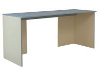 Стол 1200 Радуга (Горизонт) - лаконичный письменный стол с прямой столешницей и устойчивым основанием, декорированным контрастной кромкой в цвет столешницы. Материал изготовления: корпус - ЛДСП бежевого цвета, столешница и кромка - тонировки василек или фламинго.