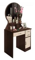 Туалетный стол «Надежда-М04» – эстетичный предмет интерьера, обеспечивающий пользователю комфортные условия для поддержания ухоженного внешнего вида. Круглое зеркало гармонично вписывается в общую конструкцию. Три выдвижных ящика и боковая секция с распашными створками предоставляют возможность хранения большого количества косметики, предметов ухода за лицом и средств гигиены. Под зеркалом установлена полка для расположения изящных вещей. Свободная ниша слева обеспечивает удобное размещение человека в положении сидя.