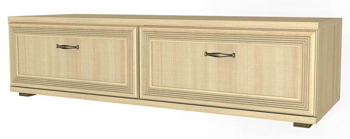 Фасад имеет уникальное сочетание глубокого тиснения и эффекта патины, присущей классическому стилю. Изящество фасада подчеркивает стекло с алмазной гравировкой и фацетом. Мебель изготавливается из высококачественных материалов: ЛДСП, МДФ (фасад).
